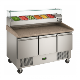 Tour à pizza réfrigéré 3 portes avec top à ingrédients plan en granit 7 avis A partir de 599,90 € HT Acheter