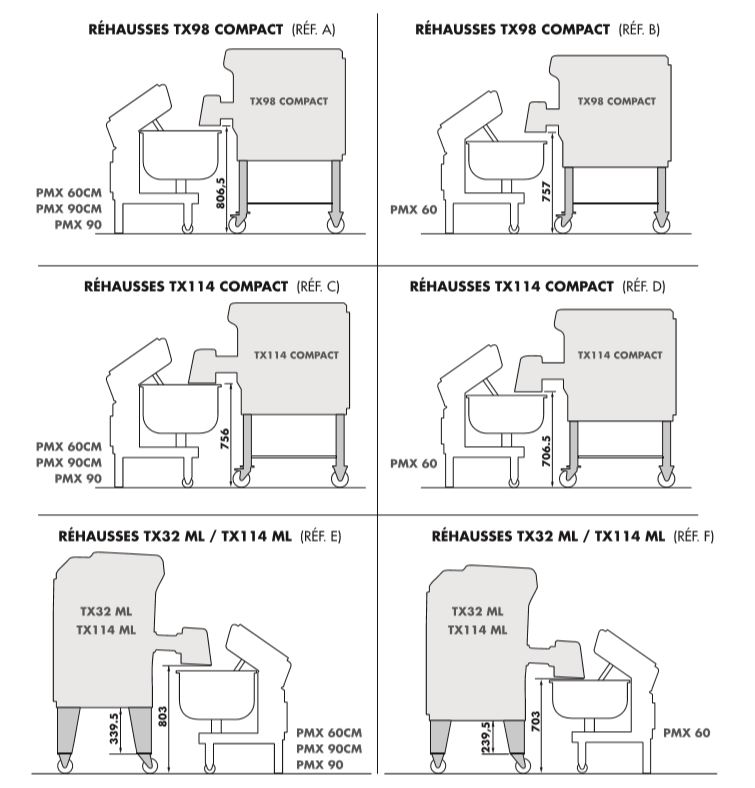 - Modèles A -B - C - D pour TX98 compact et TX114 compact