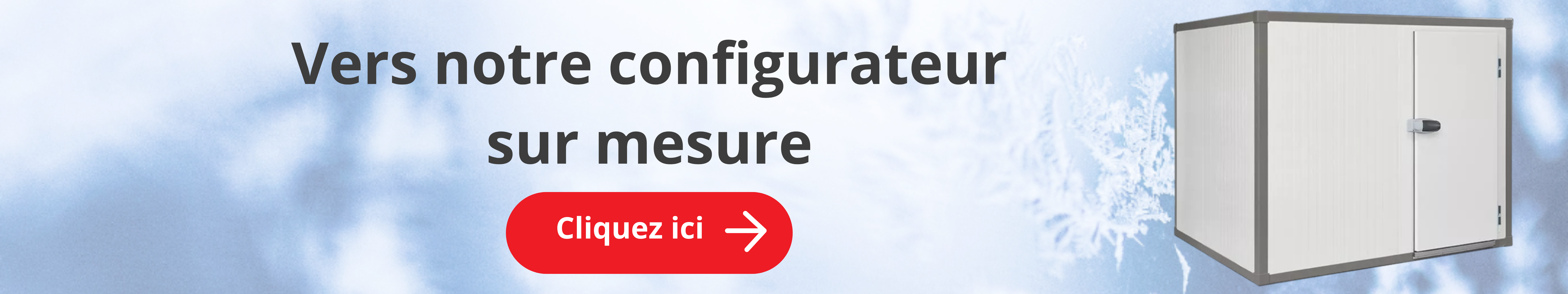 Pour répondre à des besoins spécifiques, cette chambre froide peut être équipée d’un sol renforcé, de rayonnages inox modulables ou encore d’un éclairage LED intégré. Nous proposons également un large choix de groupes froids (à cheval, plafonniers, positifs ou négatifs) afin d'adapter votre équipement au volume, à l’environnement et aux exigences réglementaires de votre activité.