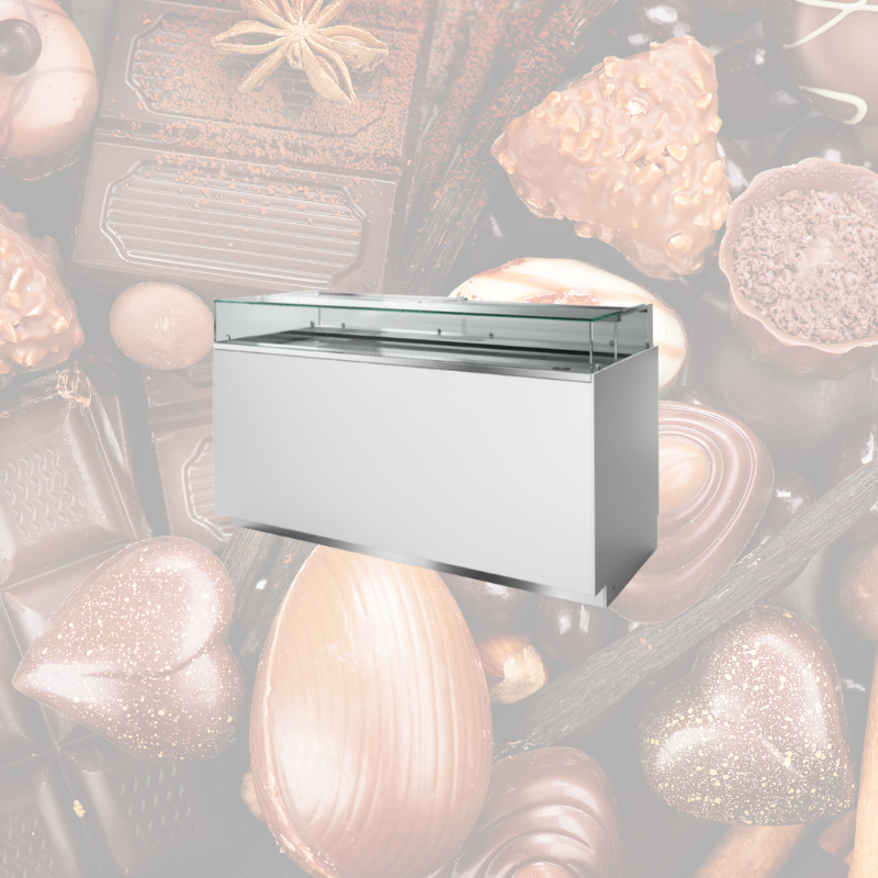 Comptoirs réfrigérés pour chocolaterie élégants et fonctionnels