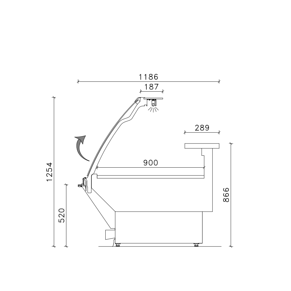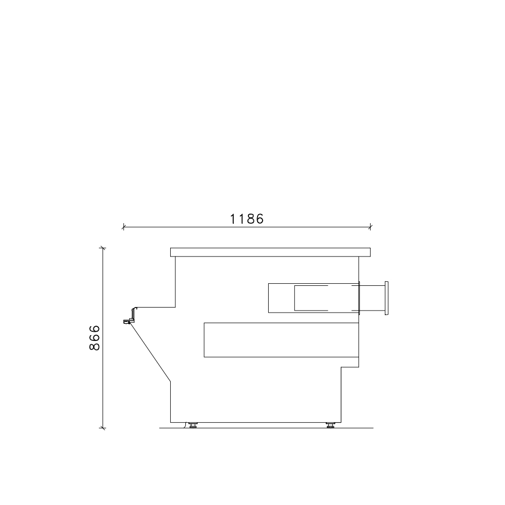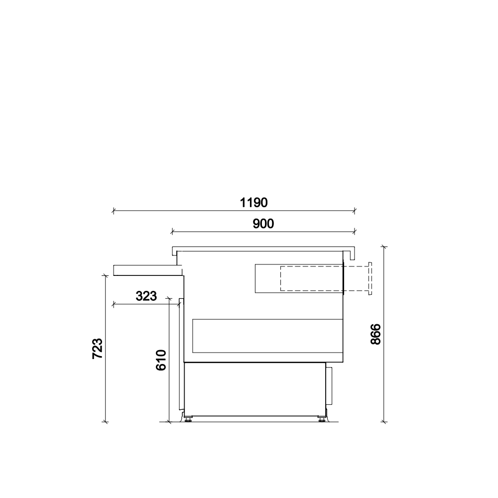 - Meuble caisse Standard (sans joues) : 937 x 1186 x 866 mm