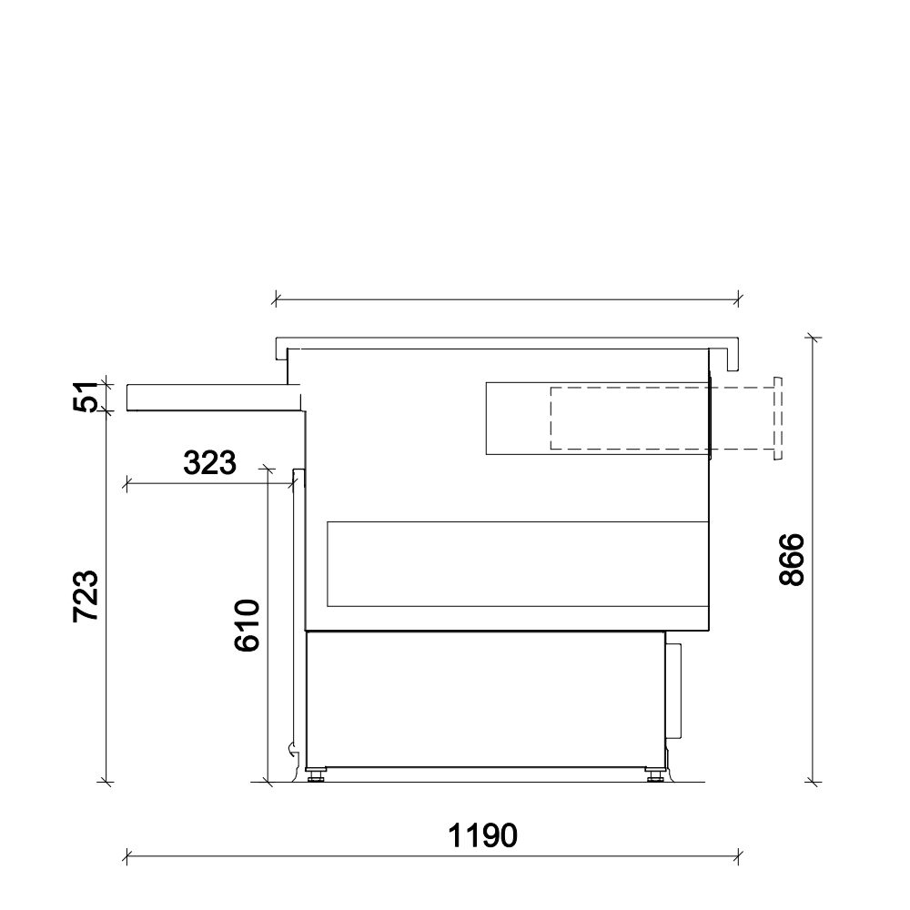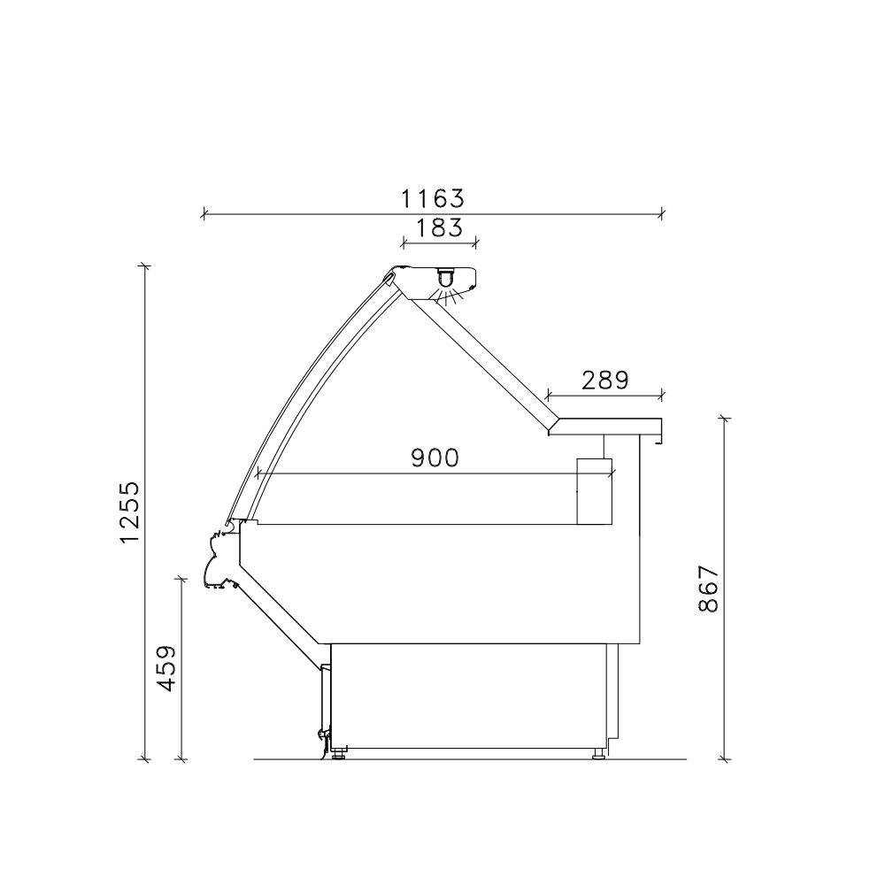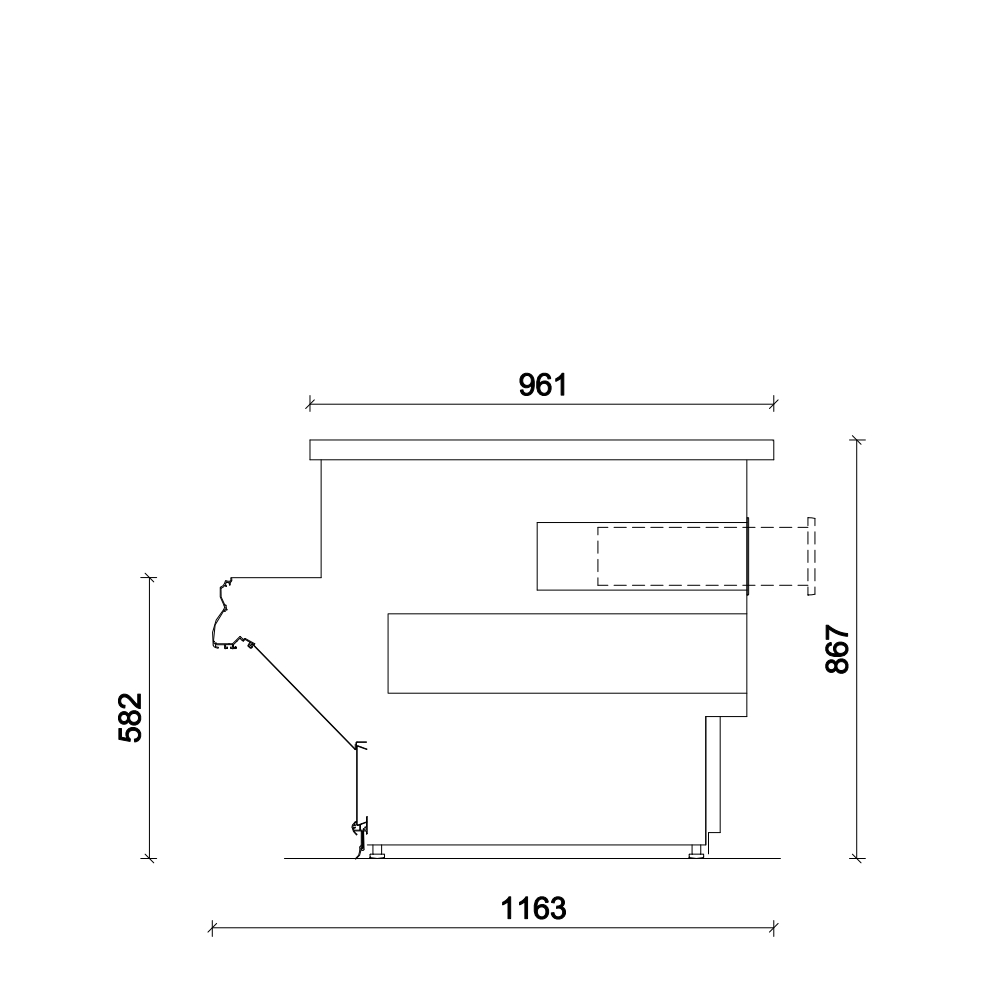 - Meuble caisse Standard (sans joues) : 937 x 1163 x 867 mm